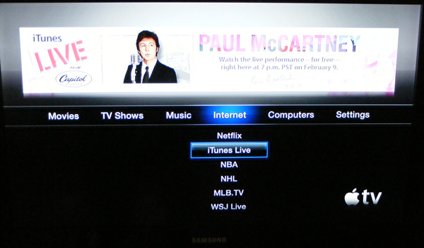 Dacă aveți un Apple TV și cont pe iTunes Store SUA, atunci veți putea urmări în direct un concert Paul McCartney, alegând din meniul Internet opțiunea iTunes Live. Iar dacă nu aveți TV, atunci puteți vedea concertul în iTunes, pe pagina lui McCartney.